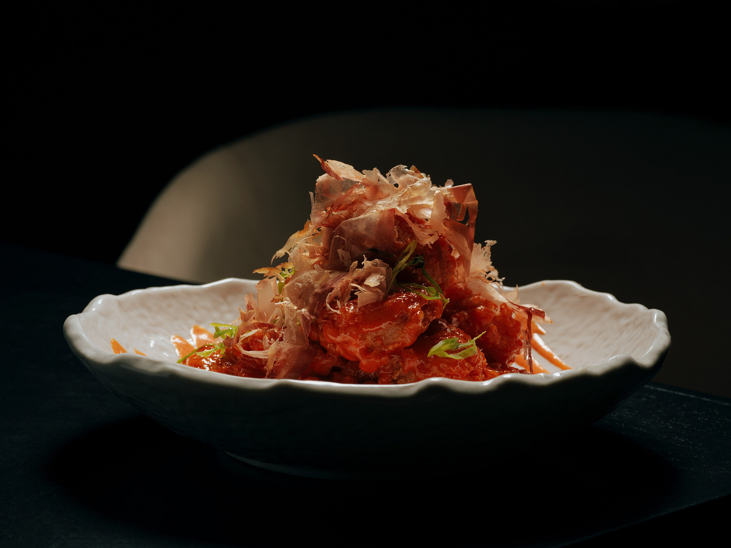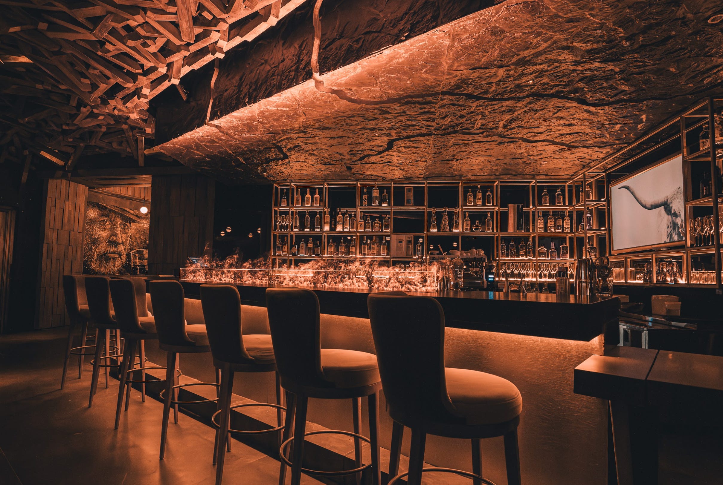 The space: Is yet another stunner, which makes the low prices even more curious. It’s made to create an earthen fire den, where you walk through an LED-lit entry that looks like embers glowing through firewood. The dining room is filled with similar effects, including a steamy bar made to appear like a fire pit, with no actual fire. A light could of smoke lends the place a campfire-y atmosphere, and it’s just dark enough to give Ro some serious sex appeal without needing a flashlight to see the menu.