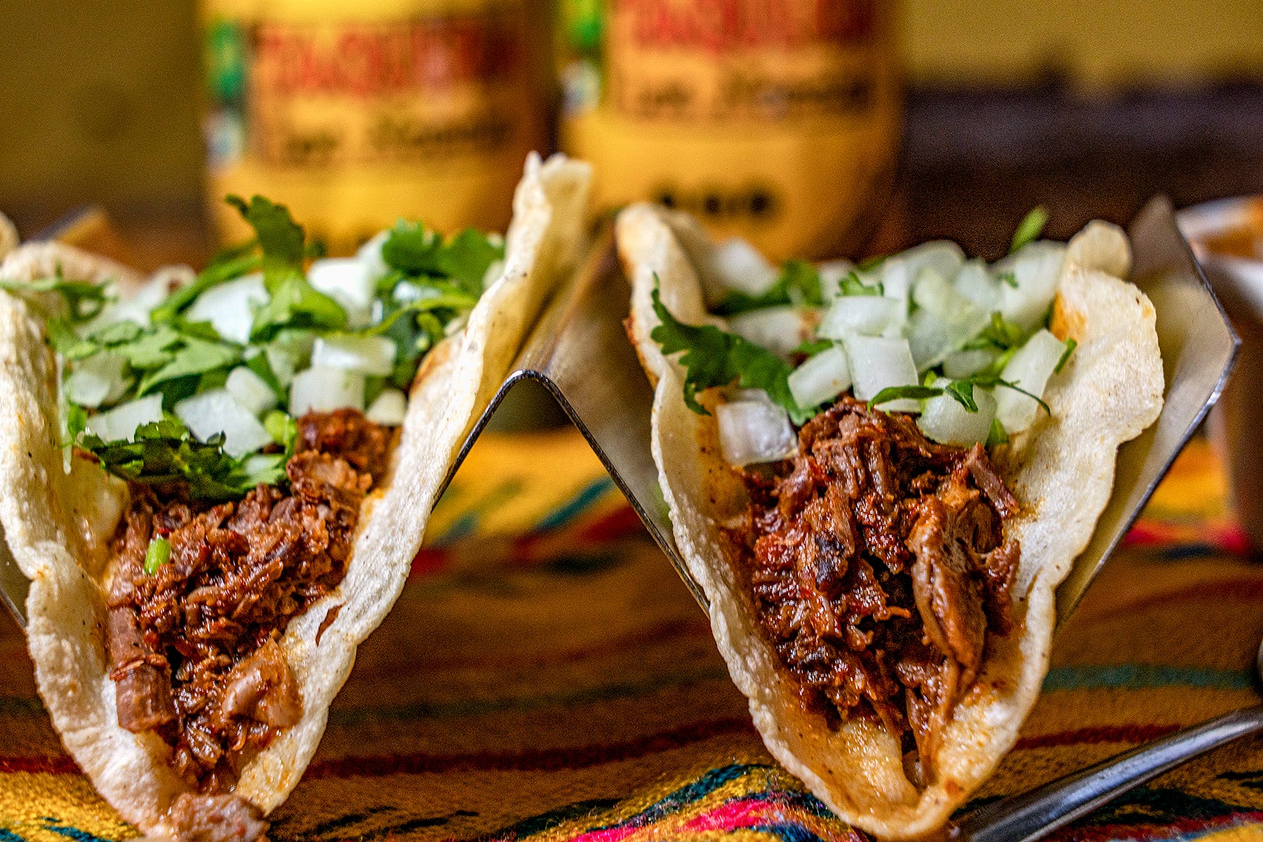 The menu is standard taqueria stuff, with big, thick chips and a couple of bottles of homemade hot sauce on the table for dipping. I liked the carne asada tacos, too, if birria is too rich for you. The grilled fajitas are actually made on a grill, not fried, and some of the better ones I’ve tried. The guacamole is fresh made to order, and a must to start any meal. Wash it down with some Jarritos for an authentic experience