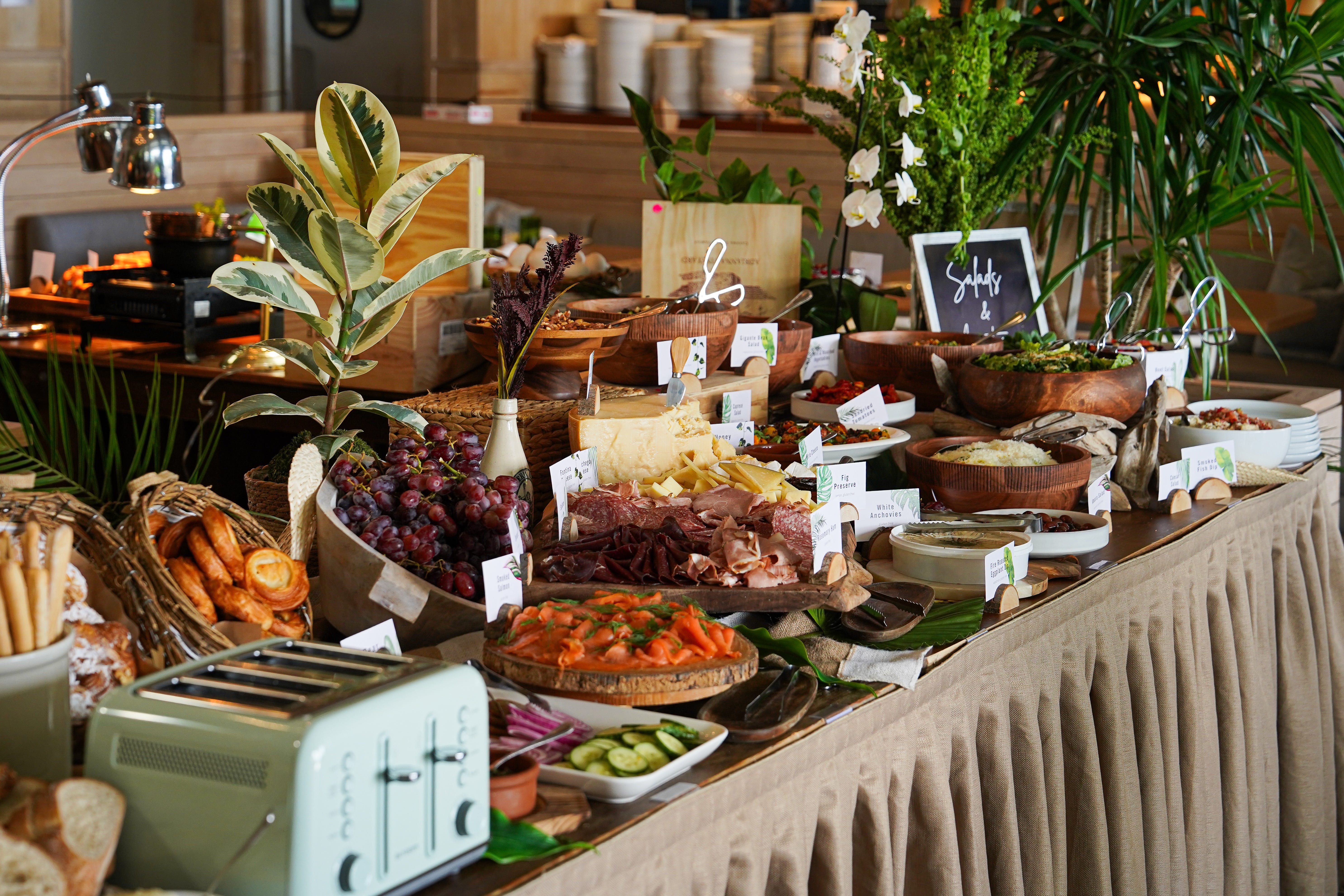 MILA’s Sunday Brunch in Miami Beach is a VIBE! Delve through flavors of the Mediterranean and Asia, at self-serve stations appointed in a stylish, airy space, building a multi-course meal at their own pace. Expect freshly baked breads and pastries, tropical fruits, a cured meats and cheese display, and standout stations like the 5J Hamon carving, raw bar with oysters, mezze offerings, and hot entrées. Desserts are plentiful and thoughtfully crafted, tying together a brunch that feels indulgent without being overwhelming. —EMN