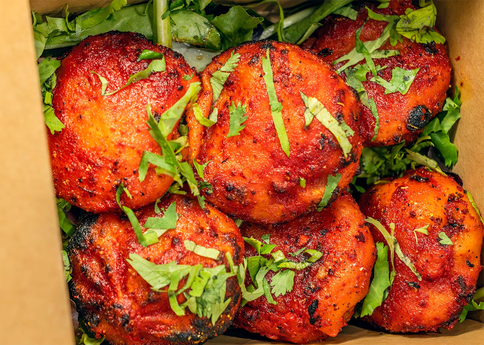 Because the food leans more creative than most. Yes, white people, you can still order mild chicken tikka masala and saag paneer. But god forbid you feel like branching out, you’ll find a big menu of dishes that aren’t on most Indian menus, including some of our sit-down favorites. But every dish travels well, so if you get it delivered you’re not going to lose much of the experience.
