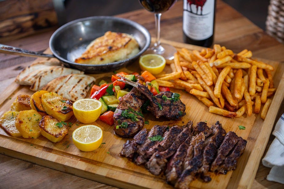 The Greek Salad is an obvious choice - the veggies are fresh and when topped with gyro meat it’s two meals. The Daily Fish Market Showcase is typically the biggest fish they could find on a boat, grilled, and served on a plate to make the whole place jealous. And, of course, the chicken and beef kebabs never fail.