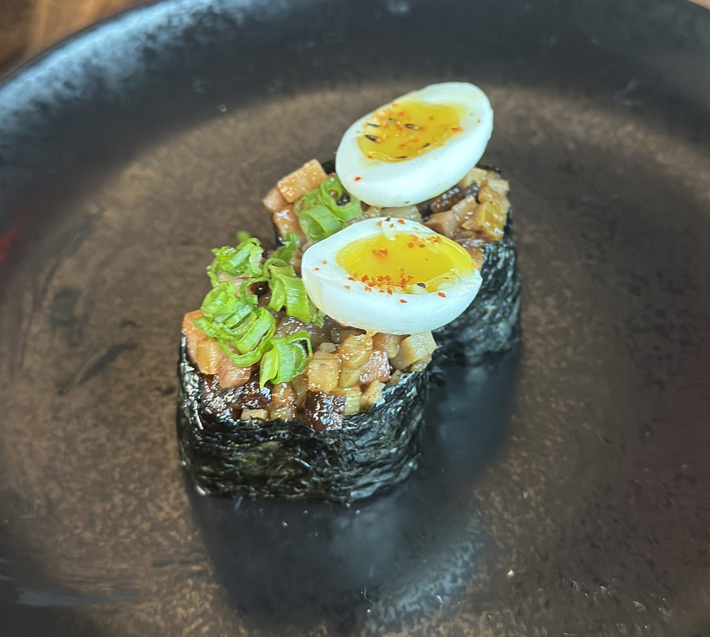 Two pieces come to an order, and both disappeared embarrassingly fast. The short rib was tender and rich, the puff rice added unexpected lightness and crunch, and that quail egg coated everything in silky richness when you bit down. What's smart about this dish is how it bridges worlds. Sushi lovers get their fix, but people who are weird about raw fish can still play along since everything here is cooked. At a restaurant where there are plenty of sushi options, this roll manages to be the thing that makes everyone at the table happy. —OF
