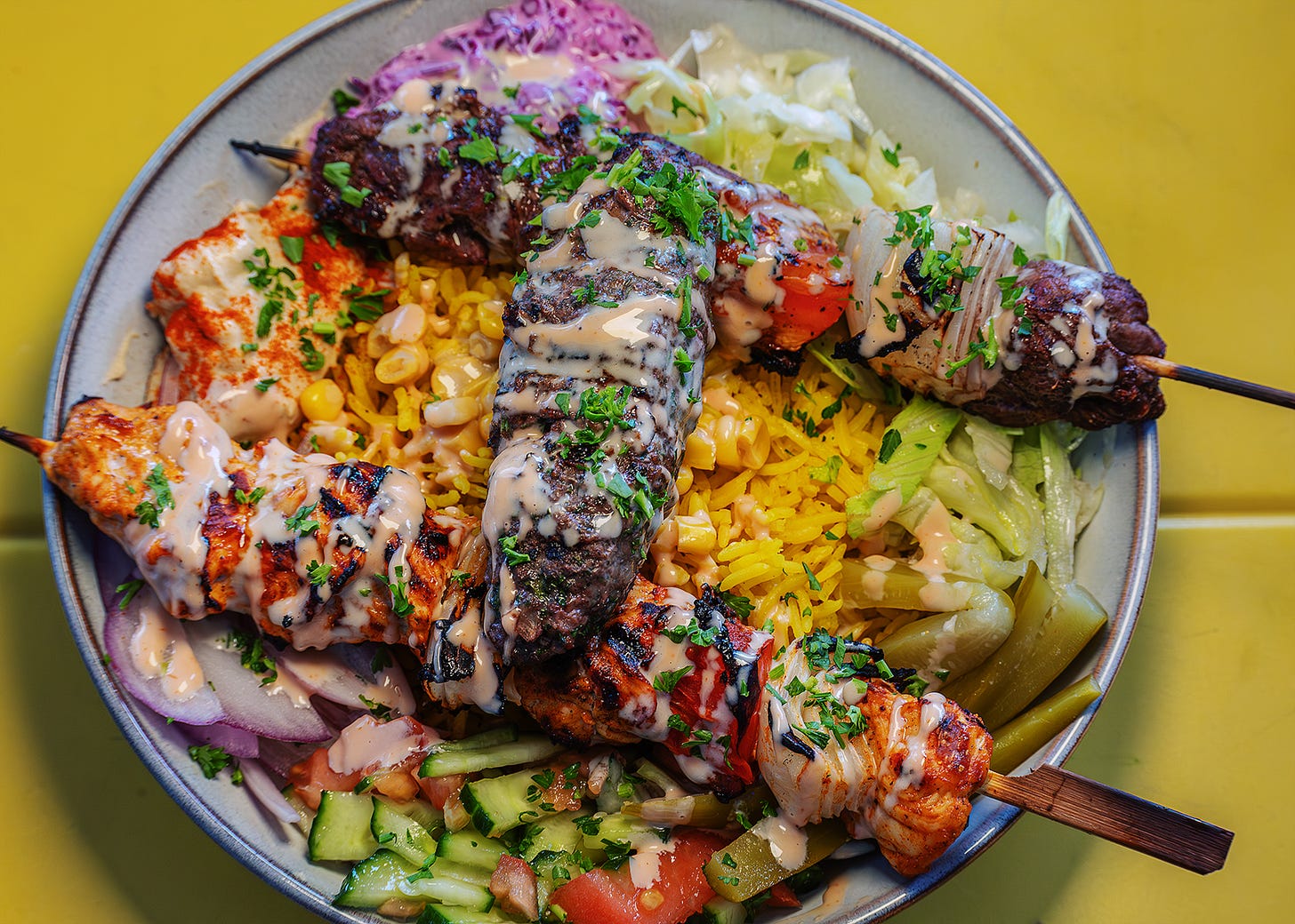 What to eat and drink: Sahara Grill brings all their spices in from the Middle East, so the meats have spicier, more complex flavors than a lot of more-generic pita palaces. Go for the pita sandwiches, which come in a pillowy soft pita, packed with grilled meat, veggies, and fresh-made hummus. The kebab bowls are much of the same, but set atop yellow rice. Both satisfy, and both bring tasting notes I haven’t found in other fast-casual Middle-Eastern spots.